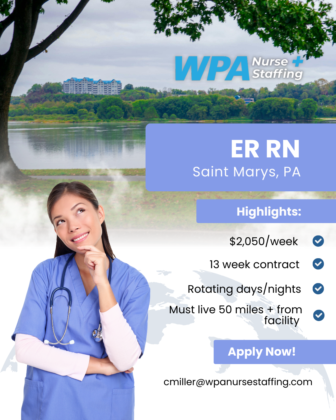 By joining the WPA family you will be a part of our community that cares and understands you and your family have unique and individual goals and needs. WPA Nurse Staffing is committed to giving you the opportunity to have a career that works for you.